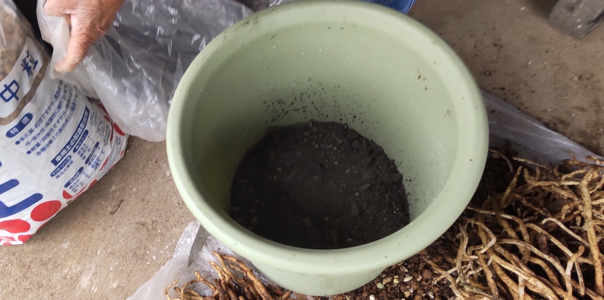 炭が入った黒土を入れておくと、鉢を外に出しても、ミミズが中に入ってこないとか。